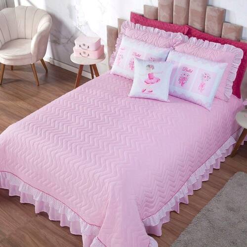 Cobre Leito Com Babado Bordado Ballet Queen 7 Peças - Rosa - Única