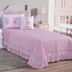 Cobre Leito Com Babado Bordado Ballet Solteiro 5 Peças - Rosa - Única