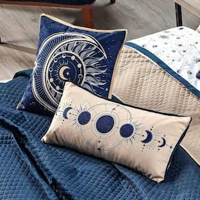 Cobre Leito Constelações Azul Marinho-caqui Dupla Face Com Almofadas Solteiro 05 Peças Astrologia Signos - Única
