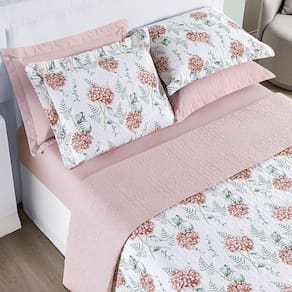 Esta coleção está disponível em quatro estampas: Forest, Hortência, Quadri e Protea, e acompanha dois porta travesseiros com aba americana para um toque charmoso.