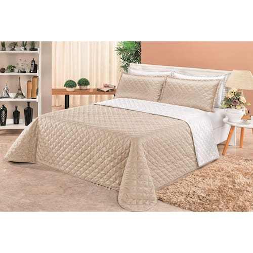 Acompanha: 01 Cobre Leito Dupla Face 2,40m x 2,20m Acabamento do Cobre Leito em Viés 02 Porta Travesseiros 70cm x 50cm Composição: Tecido Superior e Inferior: ''Microfibra '' 100% Poliéster Enchimento: 100% Poliéster