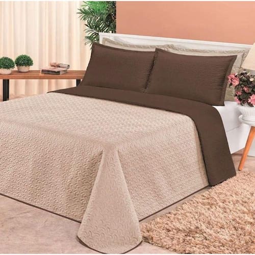Cobre leito confeccionado com tecido dupla face, mais versatilidades podendo ser dos dois lados, e cada um com uma cor diferente, com acabamento em viés, acompanha dois porta travesseiros.