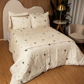 Obrigado por visitar nossa loja, temos os melhores produtos de cama, mesa e banho para sua casa com a melhor qualidade e variedade em diversos modelos, todos são rigorosamente revisados.Contém:01 Cobre leito estampado com 1,75m x 2,45m01 Porta travesseiro estampado com 0,7m x 0,5mComposição:Tecido 150 fios 67% Algodão 33% PoliésterTecido de baixo (forro) 100% poliesterEnchimento: Manta resinada 100% PoliésterIdeal para cama solteiro. Forrado em tecido.As fotos são ilustrativas, as cores podem variar de acordo com cada monitor e não representam todas as peças que compõem na foto do produto.Muito obrigada pela sua visita e boas compras.
