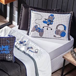 A Nova Coleção Game Streamer em Microfibra tem um toque suave e macio, o tecido caracteriza-se por ser muito leve, confortável, sedoso, com secagem rápida e ótimo caimento. Vem trazendo estilo para a decoração de seu quarto na nova tendência Dupla Face, podendo utilizar as 2 cores do cobre leito! Ficará de ótimo bom gosto e elegância, acompanhando porta-travesseiros e duas almofadinhas estampadas super modernas e temáticas! Tudo para combinar com a decoração, perfeito para dar aquele upgrade no ambiente ou para presentear o Gamer que você ama! Confira!