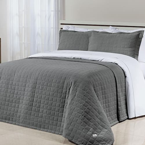 Cobre Leito Glass Super King 3Pçs 200 Fios 100% Algodão Cinza