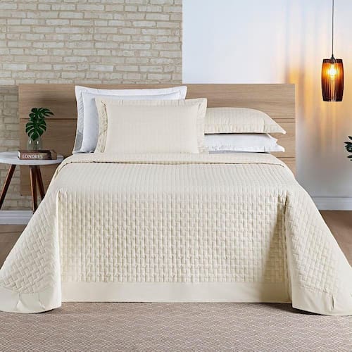 Com um design matelado, o Cobre Leito Harmonia apresenta um padrão de costura delicado e elegante, proporcionando uma aparência sofisticada à sua cama. Esse detalhe especial também ajuda a manter o enchimento do cobre leito no lugar, evitando que ele se mova durante a noite.