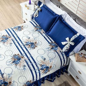 Marca: Enxovais Aquarela | Estampa: Não se Aplica | Medidas: 01 Cobre Leito 2,35m x 2,30m02 Porta Travesseiros 65cm x 45cm | Número de Peças: 03 Peças | Material: Poliéster | Cor Predominante: Floral Azul Marinho | Cama Indicada: Casal