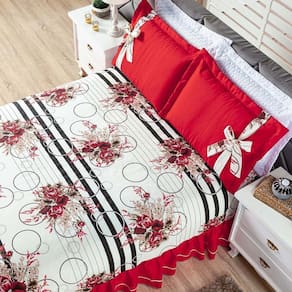 Marca: Enxovais Aquarela | Estampa: Não se Aplica | Medidas: 01 Cobre Leito 2,35m x 2,30m02 Porta Travesseiros 65cm x 45cm | Número de Peças: 03 Peças | Material: Poliéster | Cor Predominante: Floral Vermelho/Preto | Cama Indicada: Casal