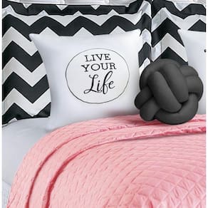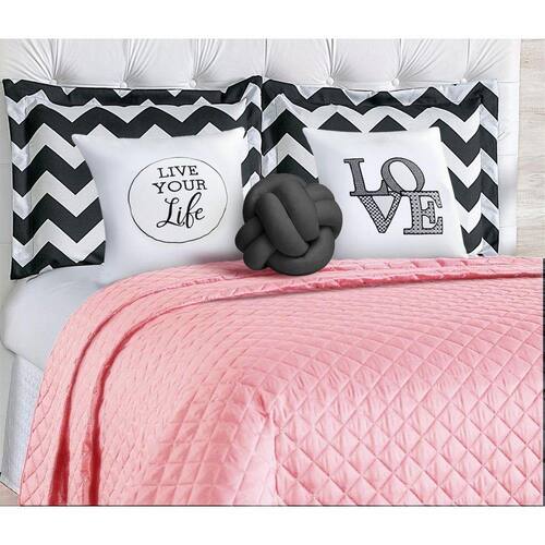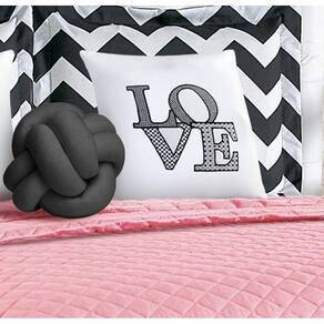 Contém: 01 Cobre Leito 2,40m x 2,20m 02 Porta Travesseiro Chevron 75cm x 55cm 02 Almofadas Bordadas 38cm x 38cm 02 Refis de Almofadas 01 Almofada Nó irregular
