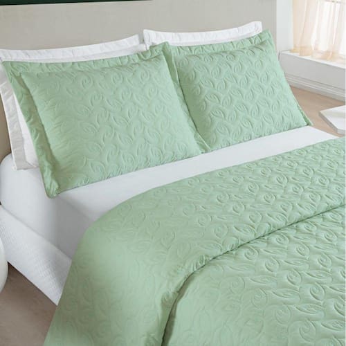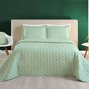 Cobre Leito King Agata Bordado Micropercal 200 Fios 3 Peças - Verde - Única
