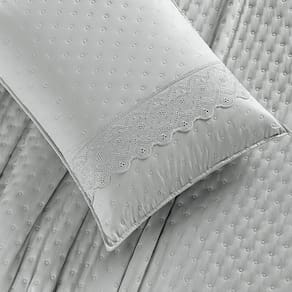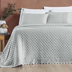 Cobre Leito confeccionado em Micropercal 200 Fios e detalhe em Laise bordada. Matelado ultrassônico com alto padrão de qualidade, proporcionando conforto e sofisticação.