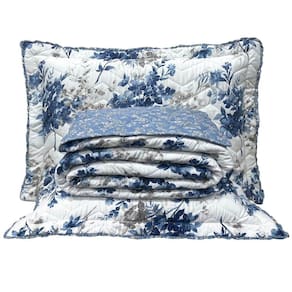 Cobre Leito King Confort Print Micropercal 300 Fios Toque De Algodão 3 Peças - Flores Azuis