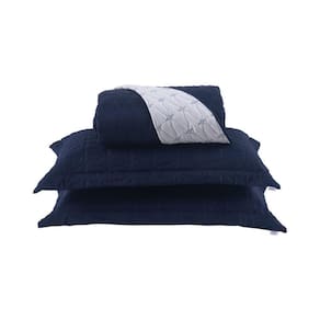 Cobre Leito King Cristal Percal 200 Fios Bordado 3 Peças Azul Marinho