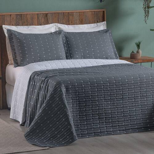 Cobre Leito King Decor Bordado 200 Fios 3 Peças - Grafite