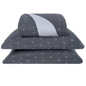 Cobre Leito King Decor Bordado 200 Fios 3 Peças - Grafite - Única