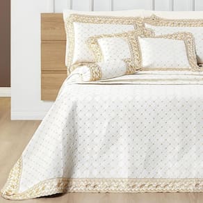 Deixe seu quarto mais aconchegante e elegante. O bordado sofisticado e a textura macia deste cobre leito vão te envolver em um abraço de conforto. Ideal para quem busca renovar a decoração com estilo e praticidade.