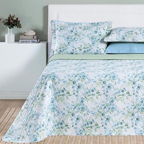 Contém: 01 Cobre Leito 2,80m X 2,60m 02 Portas Travesseiros 70cm x 50cm