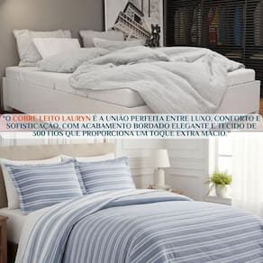Cobre Leito King Size Algodão Lauryn Bordado Super Luxuoso Cor: AZUL Dê à sua cama o luxo que ela merece com o Cobre Leito Lauryn Já imaginou chegar no quarto e encontrar sua cama King Size transformada em um verdadeiro espaço de requinte e elegância O Cobre Leito Lauryn é a escolha certa para quem busca unir sofisticação, conforto e qualidade em uma só peça. O bordado luxuoso encanta os olhos, enquanto o toque macio do algodão acolhe seu corpo, trazendo aconchego em todas as noites. Mais do que um cobre leito, ele é um convite para relaxar com estilo. Sua cama ganha vida e personalidade, e o quarto se transforma em um ambiente digno de capa de revista. Não espere mais para viver essa experiência única. Clique em Comprar Agora e sinta a diferença de dormir com um produto que combina beleza, aconchego e durabilidade. Contém: 1 Colcha - 2,80m x 2,60m 2 Porta travesseiros - 70cm x 50cm Composição: Tecido:300 Fios 1. O cobre leito é 100% algodão Sim Produzido em algodão de alta qualidade para maciez e resistência. 2. Ele é indicado para todas as estações Sim Confortável na medida certa, pode ser o ano todo. 3. O kit inclui porta-travesseiros Sim, são 2 porta-travesseiros bordados que completam o conjunto. 4. Esse cobre leito desbota com lavagens Não, desde que siga as instruções de lavagem, ele mantém a beleza por muito tempo. 5. Ele serve em cama Box King Sim, o tamanho King Size se adapta perfeitamente à cama Box. Transforme seu quarto em um verdadeiro refúgio de luxo e elegância. Garanta já o seu Cobre Leito Lauryn e sinta a diferença desde a primeira noite Marca: Não Informado