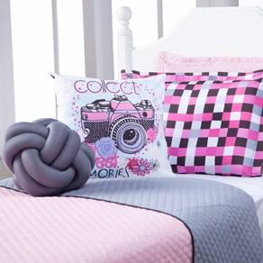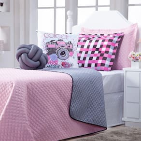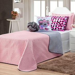 A Nova Coleção Infanto-Juvenil 2020 em Microfibra tem um toque suave e macio. O tecido caracteriza-se por ser muito leve, confortável, sedoso, com secagem rápida e ótimo caimento. Vem trazendo estilo para a decoração de seu quarto na nova tendência Dupla Face, podendo utilizar as 2 cores do cobre leito! Ficará de ótimo bom gosto e elegância. Acompanhando também uma almofadinha estampada temática e uma de nó super moderna! Tudo para combinar com sua decoração. Confira! Contém 01 Cobre Leito 2,15m X 1,60m 01 Porta Travesseiro Liso Matelado (Rosa) 70cm X 50cm 01 Porta Travesseiro Estampado 70cm x 50cm 01 Almofada Quadrada Estampada 45cm x 45cm 01 Almofada de Nó (Tamanho aproximado de 30cm x 30cm) Composição: Tecido Superior: 100% Poliéster Microfibra Tecido Inferior: 100% Poliéster Microfibra Porta Travesseiro Liso Matelado Rosa: 100% Poliéster Microfibra Porta Travesseiro Estampado: 100% Poliéster Microfibra Enchimento: 100% Poliéster Composição Refil: Externo: 100% Polipropileno Enchimento: 100% Poliuretano Instruções de Uso e Lavagem: Vide etiqueta do produto. Foto meramente ilustrativa. Variação das cores podem ocorrer de acordo com o monitor.