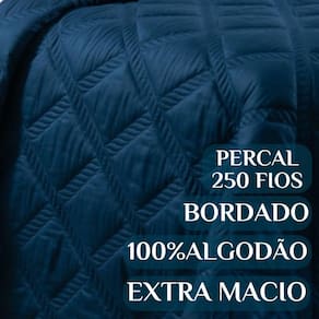 Cobre Leito 250 Fios Miami King Algodão Bordado Macio E Conforto Cor: MARINHO Transforme sua cama em um verdadeiro refúgio de elegância e conforto com o Cobre Leito Miami Super King 250 Fios. Bordado com detalhes delicados e toque macio em algodão, ele é a escolha perfeita para quem deseja unir sofisticação e aconchego. Imagine deitar após um longo dia em uma cama vestida com um cobre leito que transmite calma, luxo e suavidade. O Cobre Leito Miami não é apenas uma peça de cama, é um convite ao descanso, à sensação de hotel cinco estrelas dentro da sua casa. O bordado dá o toque clássico e sofisticado, enquanto o tecido 250 fios garante noites tranquilas e muito mais conforto. Chegou a hora de elevar o nível da sua cama Super King. Com excelente caimento, fácil de cuidar e resistente ao uso diário, esse cobre leito é a escolha ideal para quem deseja beleza e qualidade em uma só peça. Garanta já o seu Cobre Leito Miami 250 Fios Super King e descubra o prazer de dormir cercado de maciez e elegância Contém: 1 Colcha - 3,15m x 2,70m 2 Porta travesseiros - 70cm x 50cm Composição: Tecido:250 Fios 100% Algodão 1. O tecido é realmente 100% algodão Sim, ele é produzido em algodão 250 fios, garantindo maciez e durabilidade. 2. Esse cobre leito serve em cama King Size padrão Sim, ele é Super King, com medidas que cobrem perfeitamente camas King. 3. Posso usar no verão Sim O cobre leito é leve, ideal para climas quentes, e pode ser como sobreposição no frio. 4. O bordado desfia com facilidade Não, o bordado é de alta qualidade, feito para durar e manter a beleza. 5. Como devo lavar o cobre leito Pode ser lavado em máquina, no ciclo delicado, usando sabão neutro. Dê um upgrade na sua cama Adquira agora o Cobre Leito 250 Fios Miami Super King Algodão Bordado e desfrute de noites de descanso com conforto, sofisticação e muito estilo. Marca: Não Informado Ean: 7795445655825