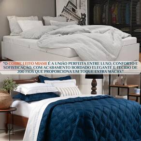 Cobre Leito 250 Fios Miami King Algodão Bordado Macio E Conforto Cor: MARINHO Transforme sua cama em um verdadeiro refúgio de elegância e conforto com o Cobre Leito Miami Super King 250 Fios. Bordado com detalhes delicados e toque macio em algodão, ele é a escolha perfeita para quem deseja unir sofisticação e aconchego. Imagine deitar após um longo dia em uma cama vestida com um cobre leito que transmite calma, luxo e suavidade. O Cobre Leito Miami não é apenas uma peça de cama, é um convite ao descanso, à sensação de hotel cinco estrelas dentro da sua casa. O bordado dá o toque clássico e sofisticado, enquanto o tecido 250 fios garante noites tranquilas e muito mais conforto. Chegou a hora de elevar o nível da sua cama Super King. Com excelente caimento, fácil de cuidar e resistente ao uso diário, esse cobre leito é a escolha ideal para quem deseja beleza e qualidade em uma só peça. Garanta já o seu Cobre Leito Miami 250 Fios Super King e descubra o prazer de dormir cercado de maciez e elegância Contém: 1 Colcha - 3,15m x 2,70m 2 Porta travesseiros - 70cm x 50cm Composição: Tecido:250 Fios 100% Algodão 1. O tecido é realmente 100% algodão Sim, ele é produzido em algodão 250 fios, garantindo maciez e durabilidade. 2. Esse cobre leito serve em cama King Size padrão Sim, ele é Super King, com medidas que cobrem perfeitamente camas King. 3. Posso usar no verão Sim O cobre leito é leve, ideal para climas quentes, e pode ser como sobreposição no frio. 4. O bordado desfia com facilidade Não, o bordado é de alta qualidade, feito para durar e manter a beleza. 5. Como devo lavar o cobre leito Pode ser lavado em máquina, no ciclo delicado, usando sabão neutro. Dê um upgrade na sua cama Adquira agora o Cobre Leito 250 Fios Miami Super King Algodão Bordado e desfrute de noites de descanso com conforto, sofisticação e muito estilo. Marca: Não Informado