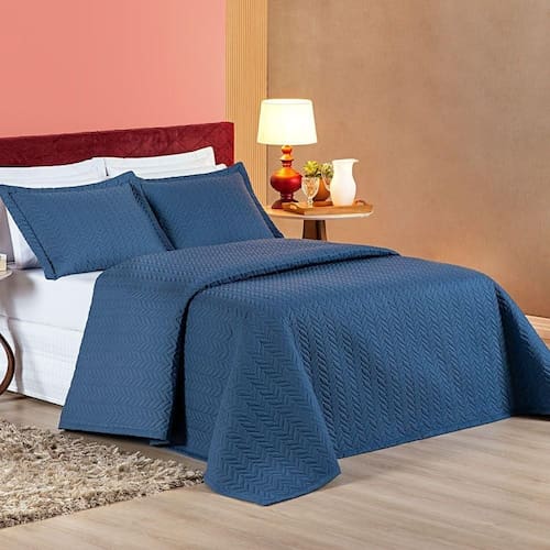 Cobre Leito Mistral Padrão Dupla Face 3 Peças - Marinho