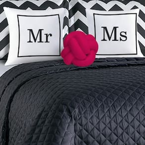 Cobre Leito Mr e Ms Chevron Casal 08 Peças - Preto Contém: 01 Cobre Leito 2,40m x 2,20m 02 Porta Travesseiro Estampados 70cm x 50cm 02 Almofadas Bordadas 38cm x 38cm 02 Refis de Almofadas 38cm x 38cm 01 Almofada Nó irregular