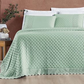 Cobre Leito Nobless Queen 03 Peças - Salvia O Cobre Leito Nobless é a escolha perfeita para transformar seu quarto em um refúgio de conforto e estilo. Feito com tecido micropercal 200 fios e matelado ultrassônico, oferece uma sensação suave e agradável. Seu design encantador é complementado pelo acabamento em leise nos porta travesseiros e no cobre leito, adicionando um toque de elegância discreta. Renove o visual do seu espaço de descanso com o Cobre Leito Nobless, proporcionando noites tranquilas e um descanso revigorante. O que vai na embalagem: 01 Cobre leito 2,60m x 2,40m 02 Porta travesseiros 70cm x 50cm