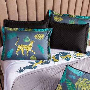 Confira nossa nova Coleção Onça, pensando especialmente na beleza do seu quarto, lançamos em apenas um kit tudo que sua cama precisa para tornar seu ambiente ainda mais lindo e super decorado. Para a praticidade do seu dia-a-dia o Cobre Leito é confeccionado em tecido Microfibra 100% Poliéster, trazendo um toque macio, com portas em acabamento debrum, o cobre leito com enchimento em manta dupla face, permitindo o uso dos dois lados (Preto e Cinza) com lindos detalhes nos porta-travesseiros estampados e nas duas almofadinhas temáticas, tudo perfeito para combinar com a sua decoração! Produzido num rigoroso controle de qualidade, dando um toque de requinte para o ambiente.