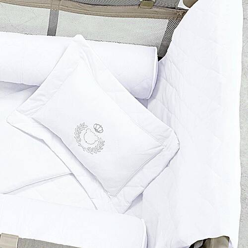 Cobre Leito Para Berço Desmontável Com Almofada Urso BrancoConheça agora nosso Cobre leito todo matelado para berço camping ou chiqueirinho, acompanhado de uma almofadinha bordada Uma graça e elegância para o seu Berço desmontável. Itens Inclusos:- 01 Cobre leito 1,40m x 1,00m.- 01 Almofada 40cm x 30cm.Composição:- Tecido: 100% Algodão.- Enchimento: 100% Poliéster.