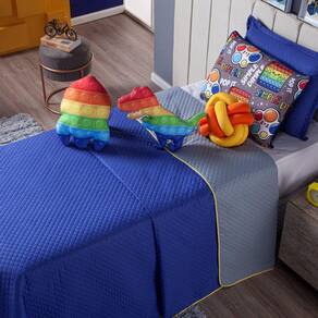 A Nova Coleção Infanto-Juvenil 2021 em Microfibra tem um toque suave e macio. O tecido caracteriza-se por ser muito leve, confortável, sedoso, com secagem rápida e ótimo caimento. Vem trazendo estilo para a decoração de seu quarto na nova tendência Dupla Face, podendo utilizar as 2 cores do cobre leito! Ficará de ótimo bom gosto e elegância. Acompanhando também as almofadinhas estampadas temáticas e uma de nó super moderna! Tudo para combinar com a decoração. Confira! Contém 01 Cobre Leito 2,15m X 1,60m 01 Porta Travesseiro Liso Matelado (Azul) 70cm X 50cm 01 Porta Travesseiro Estampado 70cm x 50cm 01 Almofada Formato Dinossauro Estampada (Aproximadamente 40cm x 40cm) 01 Almofada Formato Foguete Estampada (Aproximadamente 40cm x 40cm) 01 Almofada de Nó (Tamanho aproximado de 30cm x 30cm) Composição: Tecido Superior: 100% Poliéster Microfibra Tecido Inferior: 100% Poliéster Microfibra Porta Travesseiro Liso Matelado Azul: 100% Poliéster Microfibra Porta Travesseiro Estampado: 100% Poliéster Microfibra Enchimento: 100% Poliéster Composição Refil: Externo: 100% Polipropileno Enchimento: 100% Poliuretano Instruções de Uso e Lavagem: Vide etiqueta do produto. Foto meramente ilustrativa. Variação das cores podem ocorrer de acordo com o monitor.