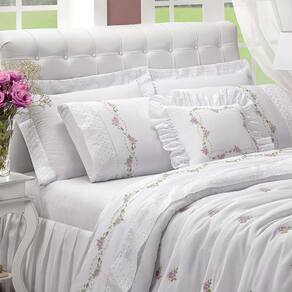 Cobre Leito Bouquet é confeccionado com tecido de alta qualidade, sendo 100% algodão pe perfeito para quem tem alergias. Com lindos bordados esse kit traz o toque romantico e requintado ao ambiente.
