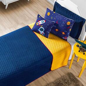 Cobre leito queen 7 peças amarelo/marinho coleção astronauta a nossa coleção astronauta tamanho queen é confeccionada em tecido 100% poliéster, sendo dupla face - o que permite ser utilizado dos dois lados e assim ter duas versões com o mesmo produto - e matelassado com a tecnologia ultrassônica. O porta travesseiro e a almofada são impressas com a tecnologia digital, garantido assim uma alta definição da estampa. Conteúdo da embalagem - 01 cobre leito - 2,60 m x 2,50 m - 02 porta travesseiro - 65 cm x 45 cm - 02 fronha estampada - 65 xm x 45 cm - 01 capa de almofada - 40 cm x 40 cm - 01 refil de almofada - 40 cm x 40 cm