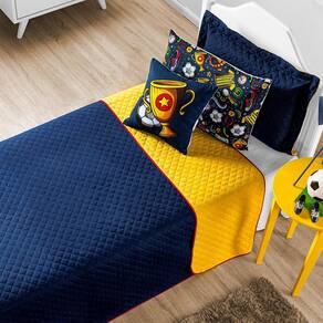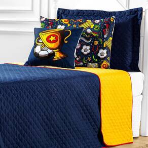 Cobre leito queen 7 peças marinho/amarelo coleção futebol o kit coleção futebol é um show de bola e a escolha perfeita para quem é apaixonado por esse tema. Sendo um dos esportes mais famosos e mais adorados do planeta, elementos como a atmosfera dos estádios, a animação da torcida, a arquibancada lotada, a paixão pelo seu time, e arte na ponta dos pés dos jogadores foram os pontos de partida para a criação colorida e cheia estampa futebol - design exclusivo da lux enxovais. Essa coleção conta com duas cores lindas e modernas que fará o dono do quarto se sentir um verdadeiro campeão. Com a proposta de alegrar o ambiente e proteger a cama, esse kit é confeccionado em tecido 100% poliéster, sendo dupla face - o que permite ser utilizado dos dois lados e assim ter duas versões com o mesmo produto - e matelassado com a tecnologia ultrassônica. O porta travesseiro e a almofada são impressas com a tecnologia digital, garantido assim uma alta definição da estampa. O kit coleção futebol queen é composto por 01 cobre leito dupla face com vira, 02 porta travesseiros dupla face com zíper, 02 fronhas com estampa digital e zíper e 01 almofada com estampa digital e zíper e 01 refil de almofada. Conteúdo da embalagem - 01 cobre leito - 2,60 m x 2,50 m - 02 porta travesseiros - 65 cm x 45 cm - 02 fronhas estampadas - 65 xm x 45 cm - 01 capa de almofada - 40 cm x 40 cm - 01 refil de almofada - 40 cm x 40 cm
