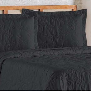 Cobre Leito Queen Bouti Mavie Floral 180 Fios 3 Peças - Preto - Única