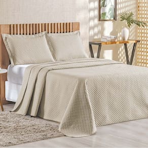 Cobre Leito Queen Bouti Mavie Geométrico 180 Fios 3 Peças - Caqui - 100% Poliéster - Cáqui