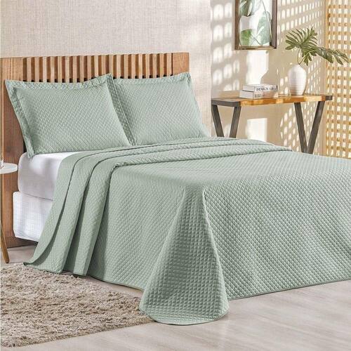 Cobre Leito Queen Bouti Mavie Geométrico 180 Fios 3 Peças - Verde Malva