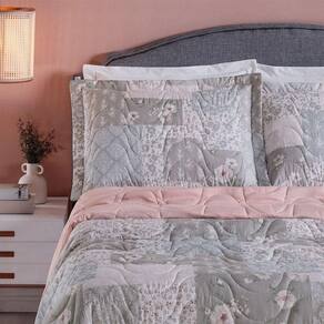 O cobre leito Colori é ideal para compor uma decoração de quarto romântica e delicada. O conjunto é composto por cobre leito dupla face matelassado de um lado com estampa e do outro lado liso e acabamento com viés em toda borda junto de porta travesseiro matelassado estampado, debrum (abas) e fechamento em modelo envelope (não possui zíper). Todos itens são fabricados com tecido percal 200 fios 100% poliéster que recebe um tratamento especial para ser extremamente macio ao toque, não desbota nem forma bolinhas com o uso e lavagens.