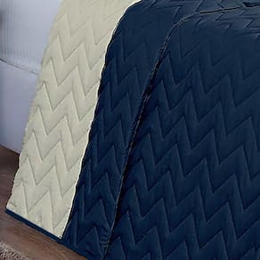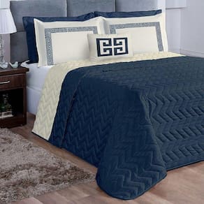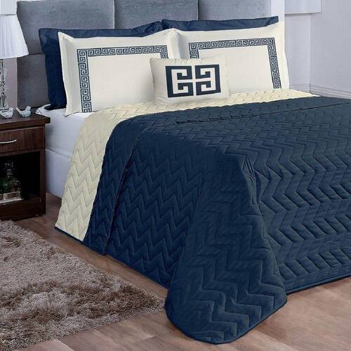 Cobre Leito Queen Grécia Dupla Face 7 Peças Azul Marinho