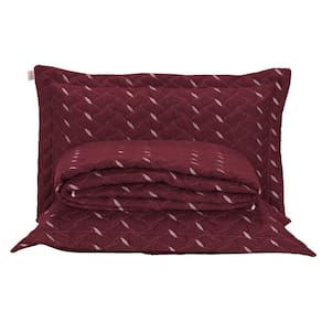 Cobre Leito Queen Heitor Bordado Hipercal 400 Fios 3 Peças - Vermelho Marsala