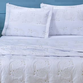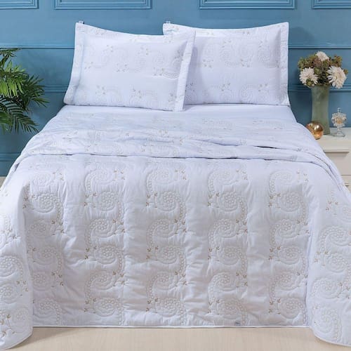 Cobre Leito Queen Mistral Percal 200 Fios Bordado 3 Peças - Branco
