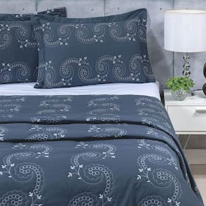 Para quem ama decorar o quarto com estilo clássico os itens da coleção Mistral são essenciais. Peças sofisticadas que unem tecido de alta qualidade com bordados belos e minuciosos. O kit de cobre leito é composto por 3 peças, sendo elas: um cobre leito com bordado, acabamento de viés em toda volta ;e dois portas travesseiros com bordado, debrum (abas) em 3 lados e fechamento modelo envelope na parte traseira. Os itens são fabricados com percal 200 fios 100% algodão e o lado avesso do cobre leito é de percal 180 fios misto de 60% algodão e 40% poliéster.