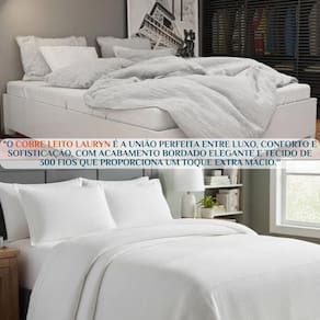Cobre Leito Queen Size Algodão Lauryn Bordado Super Luxuoso Cor: OFF WHITE Transforme seu quarto em um refúgio de sofisticação e conforto todos os dias. Este Cobre Leito Queen Size Lauryn é confeccionado em algodão de alta qualidade com 300 fios, trazendo maciez incomparável, durabilidade e frescor ao toque. O bordado refinado adiciona um charme sofisticado, perfeito para quem deseja compor um quarto elegante sem abrir mão do conforto. Imagine deitar-se em um cobre leito que parece ter saído de um hotel 5 estrelas. O toque suave do algodão, o brilho delicado do bordado e a sensação de luxo transformam seu descanso em uma experiência única. É como vestir sua cama com elegância e aconchego. Além da beleza e do conforto, o Cobre Leito Lauryn é fácil de cuidar, resistente a lavagens e com caimento impecável sobre a cama. O tamanho Queen é ideal para garantir cobertura total e uma aparência sempre sofisticada no quarto. Contém: 1 Colcha - 2,60m x 2,40m 2 Porta travesseiros - 70cm x 50cm Composição: Tecido:300 FIOS 1. O cobre leito acompanha porta-travesseiros Sim, o conjunto já vem com porta-travesseiros no mesmo design, garantindo a harmonia do visual. 2. O tecido amassa com facilidade Não, o algodão 300 fios possui caimento elegante e menos propenso a amassados, mantendo sua cama sempre arrumada. 3. Ele é indicado para todas as estações do ano Sim, pode ser tanto no verão quanto no inverno, trazendo conforto em qualquer clima. 4. O bordado desfia com o tempo Não, é produzido com técnica reforçada que garante durabilidade mesmo após várias lavagens. 5. É um produto hipoalergênico Sim, o algodão natural é seguro e ideal para pessoas com pele sensível ou alergias. Durma com o luxo que você merece Garanta já o Cobre Leito Lauryn e transforme suas noites em verdadeiras experiências de conforto e sofisticação.