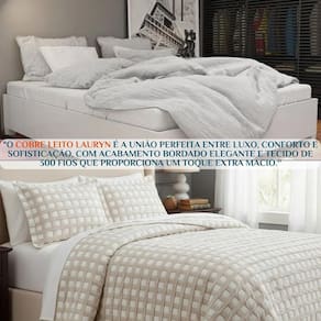 Cobre Leito Queen Size Algodão Lauryn Bordado Super Luxuoso Cor: CAQUI Transforme seu quarto em um refúgio de sofisticação e conforto todos os dias. Este Cobre Leito Queen Size Lauryn é confeccionado em algodão de alta qualidade com 300 fios, trazendo maciez incomparável, durabilidade e frescor ao toque. O bordado refinado adiciona um charme sofisticado, perfeito para quem deseja compor um quarto elegante sem abrir mão do conforto. Imagine deitar-se em um cobre leito que parece ter saído de um hotel 5 estrelas. O toque suave do algodão, o brilho delicado do bordado e a sensação de luxo transformam seu descanso em uma experiência única. É como vestir sua cama com elegância e aconchego. Além da beleza e do conforto, o Cobre Leito Lauryn é fácil de cuidar, resistente a lavagens e com caimento impecável sobre a cama. O tamanho Queen é ideal para garantir cobertura total e uma aparência sempre sofisticada no quarto. Contém: 1 Colcha - 2,60m x 2,40m 2 Porta travesseiros - 70cm x 50cm Composição: Tecido:300 FIOS 1. O cobre leito acompanha porta-travesseiros Sim, o conjunto já vem com porta-travesseiros no mesmo design, garantindo a harmonia do visual. 2. O tecido amassa com facilidade Não, o algodão 300 fios possui caimento elegante e menos propenso a amassados, mantendo sua cama sempre arrumada. 3. Ele é indicado para todas as estações do ano Sim, pode ser tanto no verão quanto no inverno, trazendo conforto em qualquer clima. 4. O bordado desfia com o tempo Não, é produzido com técnica reforçada que garante durabilidade mesmo após várias lavagens. 5. É um produto hipoalergênico Sim, o algodão natural é seguro e ideal para pessoas com pele sensível ou alergias. Durma com o luxo que você merece Garanta já o Cobre Leito Lauryn e transforme suas noites em verdadeiras experiências de conforto e sofisticação.