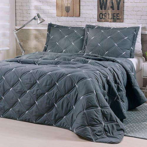 Uma cama com belo enxoval tem o poder de mudar todo o ambiente do quarto. O cobre leito Unique une a beleza dos bordados com uma paleta de cores modernas e atuais para formar uma cama posta acolhedora. O kit é composto por um cobre leito com bordado em linha e viés e dois portas travesseiros bordados com debrum (abas). O fechamento dos portas travesseiros é modelo envelope, portanto, não possui zíper. Todos os itens são fabricados em tecido hipercal 200 fios 100% poliéster, tecido esse que garante maciez e qualidade ao produto sem ser necessário passar com ferro após a lavagem.