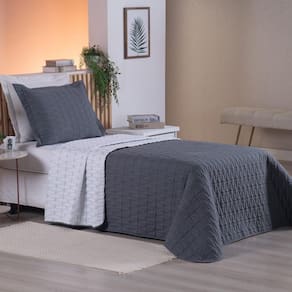 Cobre Leito Solteiro Cristal Percal 200 Fios Bordado 2 Peças - Grafite - Única