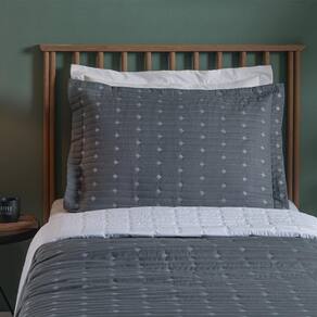 Cobre Leito Solteiro Decor Bordado 200 Fios 2 Peças - Grafite