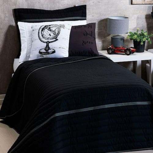 Renove o visual do seu quarto com nosso incrível e confortável Kit Inove. Surpreenda-se com o conforto e maciez do tecido. O kit é composto por um cobre leito matelassado dupla face preto com detalhe de viés, porta travesseiro também matelassados com detalhe de viés colorido e duas capas de almofadas estampadas digitalmente, com estampa apenas na parte frontal e zíper invisível super discreto.
