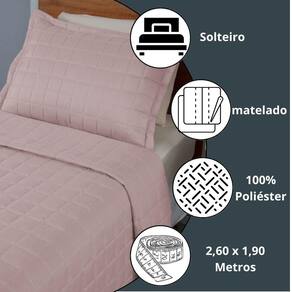 Cobre Leito Solteiro Matelado Soft Dupla Face com Porta-Travesseiro Variação: Rosê Olá Está procurando renovar o visual da cama com praticidade, conforto e um toque moderno Seja bem-vindo à Atual Ecommerce Pensamos em você que valoriza conforto sem abrir mão do bom gosto e do custo-benefício. Apresentamos o Kit 2 Peças Cobre Leito Solteiro Soft Dupla Face Matelado - o produto ideal para quem busca um item versátil, aconchegante e fácil de cuidar. Você já se pegou trocando capas ou jogos de cama o tempo todo para combinar com a decoração O Soft Dupla Face resolve esse problema Com duas opções de cores em um único produto, você tem liberdade para mudar o estilo do quarto sempre que quiser - com praticidade e sem gastar mais. Veja o que nossos clientes destacam: Versatilidade em dobro: A função dupla face permite criar dois visuais diferentes com um único produto. Ideal para quem gosta de mudar Toque macio e leveza para o dia a dia: O tecido é muito gostoso e leve, perfeito para climas mais quentes. - Denise S. Qualidade com ótimo custo-benefício: não imaginava tanta qualidade por esse preço. Comprei para o meu filho e vou comprar outro para mim. - Roberto C. Especificações Técnicas: Kit com 2 peças 01 Cobre-leito Solteiro: 2,60 m x 1,90 m 01 Porta-travesseiro: 70 cm x 50 cm com aba americana Tecido: 100% poliéster Enchimento: 100% poliéster Acabamento: Matelado em costura Dupla face: 2 cores em um único produto Cores disponíveis: 6 opções Categoria: Casa - Quarto / Cama Solteiro - Cobre Leitos e Colchas : 3 meses contra defeitos de fabricação - mais segurança e confiança para sua compra. O Kit Soft é aquele item coringa que todo lar merece ter Garanta já o seu e transforme o visual do quarto com um simples toque. Agradecemos a sua visita. Boas compras Marca: Não Informado