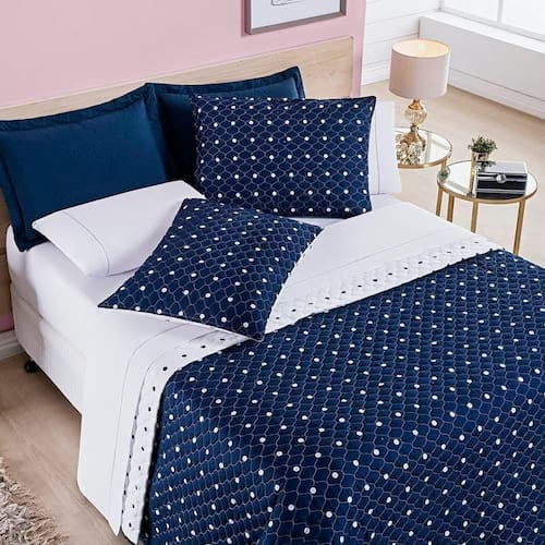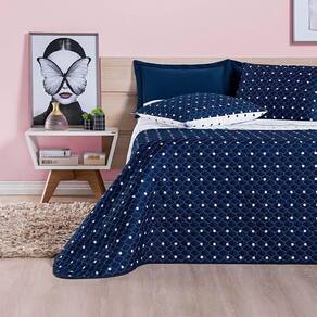 Cobre Leito Solteiro Petit Poa Micropercal 200 Fios Dupla Face 2 Peças - Marinho